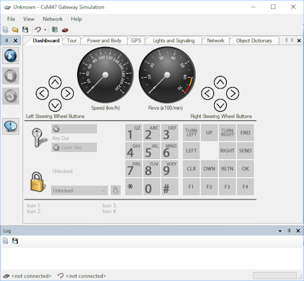 Die Gateway-Simulation basiert auf der gleichen Software, die in den Gateways verschiedener Automobilhersteller eingesetzt wird. Sie erlaubt es CiA447 kompatiblen Geräten, auf die Daten der Autos zuzugreifen, wie Armaturenbrettkomponenten (Schaltflächen, Anzeigen).
